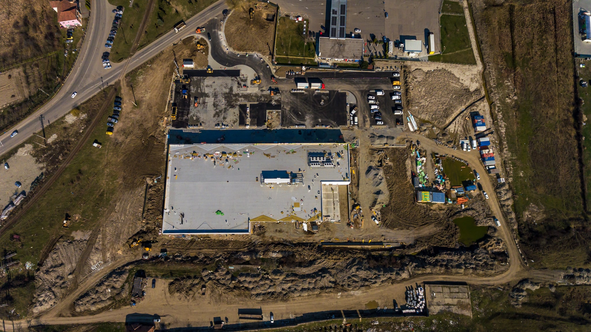 The Hypermarket in Dej, CJ (2019-2020) was successfully completed, featuring a 5,000 m² retail space built on a prefabricated concrete structure, ensuring durability and efficient construction. The project included the installation of façade enclosures and roofing, along with the execution of partitioning, high-quality interior and exterior finishes to enhance functionality and customer experience. Additionally, exterior arrangements, including access roads and parking platforms, were developed to optimize accessibility and traffic flow. This project showcased a commitment to modern retail infrastructure, providing a well-designed and efficient commercial space.